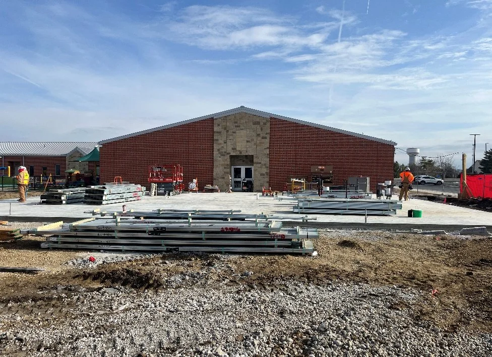 Over at the Early Learning Center, under-slab utilities and stem walls have been completed, and slabs have been poured. Structural steel work has begun and the trash enclosure structure has been built. The furniture contract has been executed and furniture ordered, and turf submittals have been sent for approval.